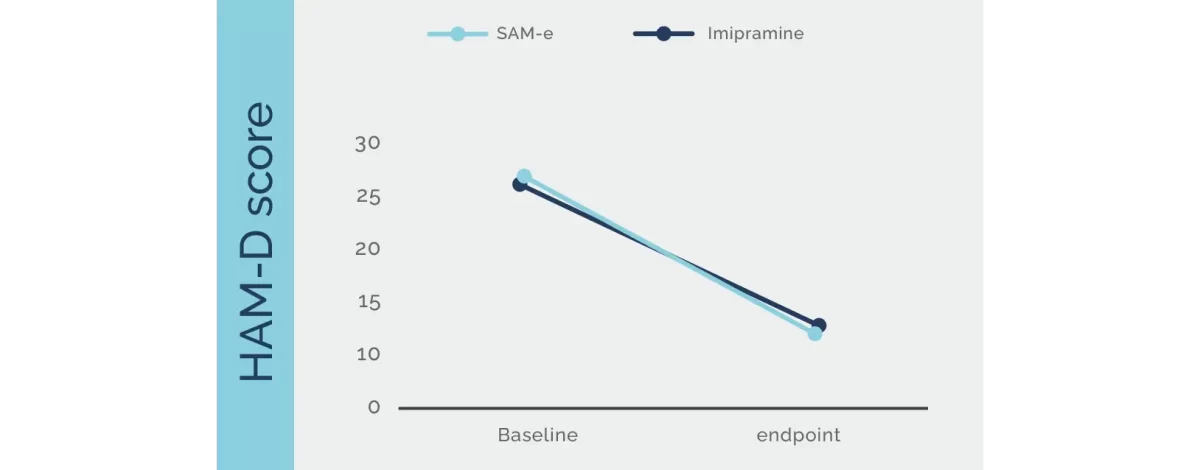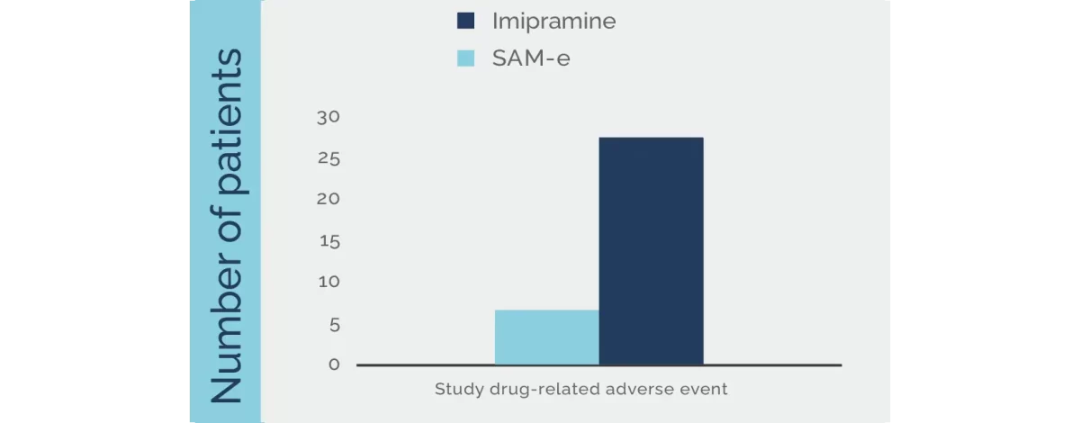 The number of patients experiencing adverse events caused by SAM-e and imipramine.